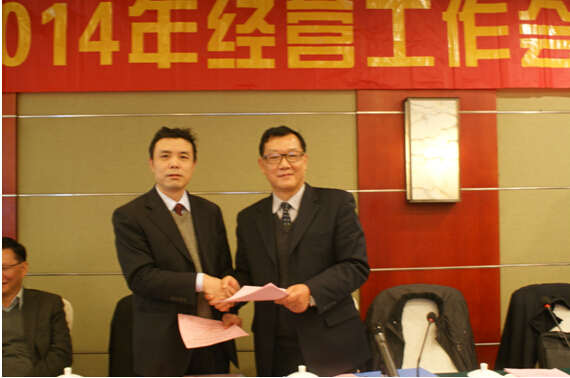 2014年年度经营工作会议上,公司董事长刘年红先生与公司董事、工程配套分公司经理符韧先生签订2015年目标责任书