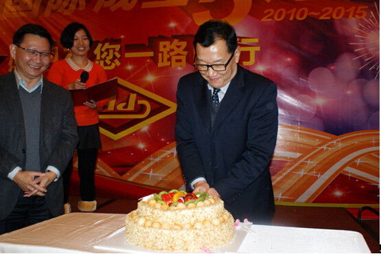 公司董事长刘年红先生在公司5周年晚宴现场切生日蛋糕,祝福拼搏在线(中国)唯一官方网站这艘 “航船”能够劈波斩浪,勇往直前,一帆风顺,再创辉煌!