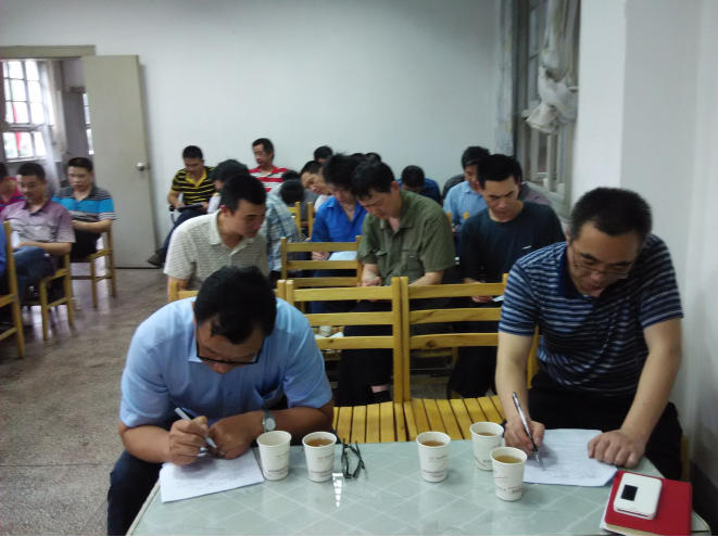 6月10日,公司安全生产专题培训考核现场。董事长刘年红(左一)、公司董事文义德(右一)在参加考试。